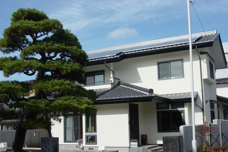 屋根の一角には太陽光発電用のソーラーパネルを設置し、創エネ性能も発揮。
