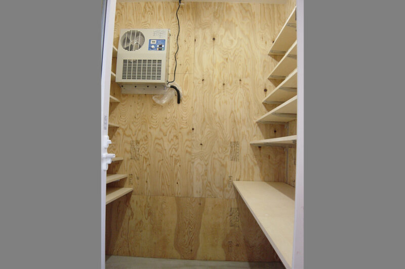 施主さんのリクエストで食品庫を設置。夏でも一定の温度を保つ機能を実現。